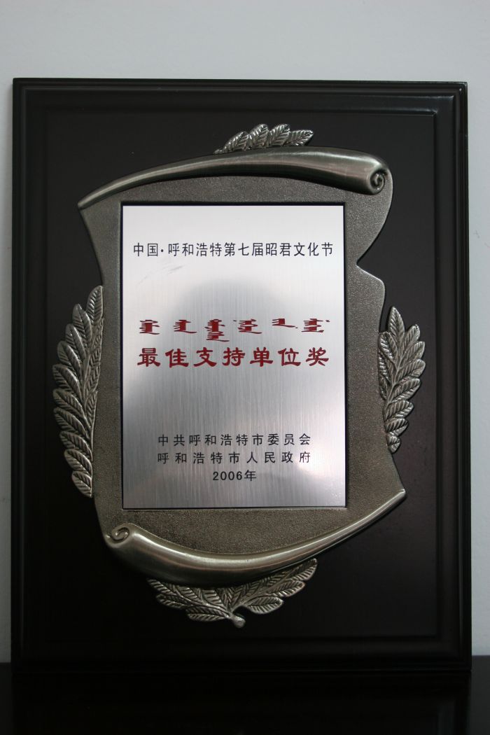2006年呼和浩特第七屆昭君文化節(jié)最佳支持單位獎(jiǎng)