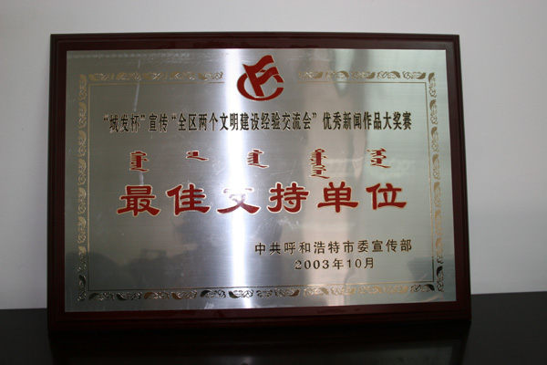 城發(fā)公司獲得2003年城發(fā)杯宣傳全區(qū)兩個(gè)文明建設(shè)經(jīng)驗(yàn)交流會(huì)優(yōu)秀新聞作品大獎(jiǎng)賽最佳支持單位