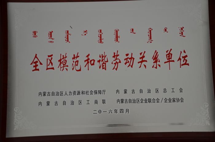 公司榮獲2016年全區(qū)模范和諧勞動(dòng)關(guān)系單位