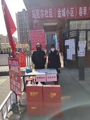 財務部董旭、張婷婷、閆姝敏、杜思雨、趙曉梅等同志在保障本職工作的基礎上主動請纓積極支援到各自所在的社區(qū)工作當中,他們其中有共產(chǎn)黨員也有普通群眾,但在這場沒有硝煙的疫情防控狙擊戰(zhàn)中,他們擁有一個統(tǒng)一的身份可愛的志愿者,天氣雖然寒冷,他們卻斗志滿滿的穿梭在社區(qū)的各個角落,協(xié)助社區(qū)工作人員開展測溫、登記人員信息、宣傳防護知識等工作,其中董旭同志是一名共產(chǎn)黨員,但她也是兩個孩子的媽媽,產(chǎn)假剛剛結(jié)束就積極投身到疫情防控工作當中,充分展現(xiàn)了共產(chǎn)黨員的本色,發(fā)揮了先鋒模范帶頭作用。面對疫情他們不畏懼退縮,堅守在防疫一線,用細心換來安心,用愛心凝聚力量,用信心決戰(zhàn)疫情,為防控疫情工作默默的貢獻著自己的力量。