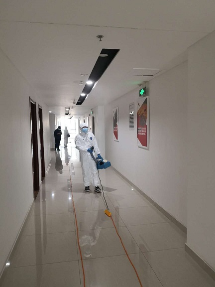 為進(jìn)一步做好新型冠狀病毒感染的肺炎疫情防控工作,確保廣大職工身體健康,城發(fā)物業(yè)公司項(xiàng)目處邀請(qǐng)專業(yè)消殺隊(duì)伍采用無毒藥劑有效針對(duì)辦公樓內(nèi)食堂、電梯間、應(yīng)急通道、走廊、衛(wèi)生間等公共區(qū)域進(jìn)行全面消毒,確保公共區(qū)域衛(wèi)生安全。