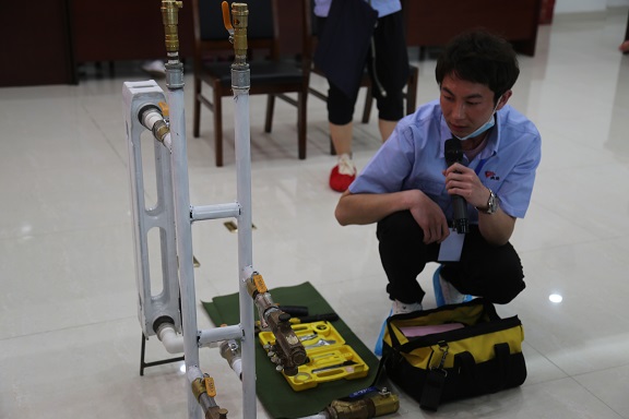 橋靠分公司經(jīng)理阮強(qiáng)告訴筆者,他們就是供熱一線員工,面對的就是用戶,遇到過各種各樣的用戶訴求。為供好熱、服好務(wù),所以平時對職工要求非常嚴(yán)格,橋靠分公司的參賽人員看到他們,緊張到在入場時就把服務(wù)工具都掉地上了。