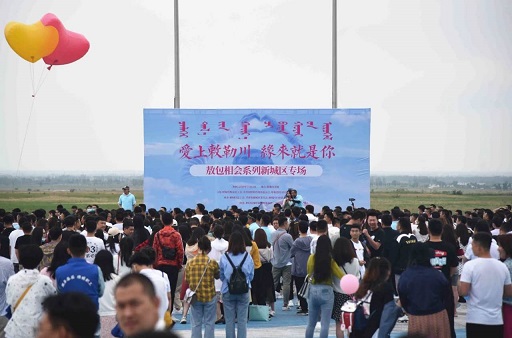 活動(dòng)當(dāng)天,1300余名單身青年乘坐26輛愛情專車相聚在浪漫的敕勒川草原?;顒?dòng)中,互動(dòng)游戲、環(huán)湖騎行、大屏彈幕、漫步草原棧道等環(huán)節(jié)有序開展,讓相聚在一起的陌生青年男女在有趣的游戲和浪漫的環(huán)境中彼此了解、相互熟悉,拉近了大家的距離,搭起了一座座情感交流的橋梁。這次浪漫的大型相親活動(dòng)為單身青年男女創(chuàng)造了一個(gè)良好的交友、交流平臺(tái)。