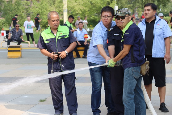 在快速啟動消防栓,連接消防水帶場景模擬中,參與演練的工作人員,動作敏捷,安裝準(zhǔn)確,配合有序,第一時(shí)間消滅火情。