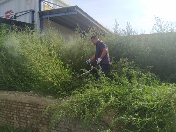 在除草過程中,大家不怕臟不怕累,默契配合,手持工具,將園區(qū)內(nèi)草坪、綠化帶雜草進行了集中清理。盡管已立秋,但太陽的威力絲毫未減。除草過程中,大家的衣服很快就被汗水浸濕,但大家沒有退縮,直到雜草被清除干凈,整個園區(qū)的雜草被徹底清除干凈,才帶著滿身汗水和喜悅的笑容離開。