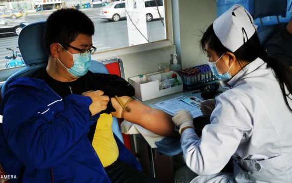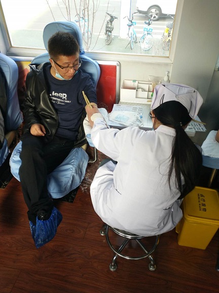 10時(shí)整,報(bào)名獻(xiàn)血的干部職工陸續(xù)進(jìn)入采血車,大家首先登記體檢,排隊(duì)依次進(jìn)行獻(xiàn)血。