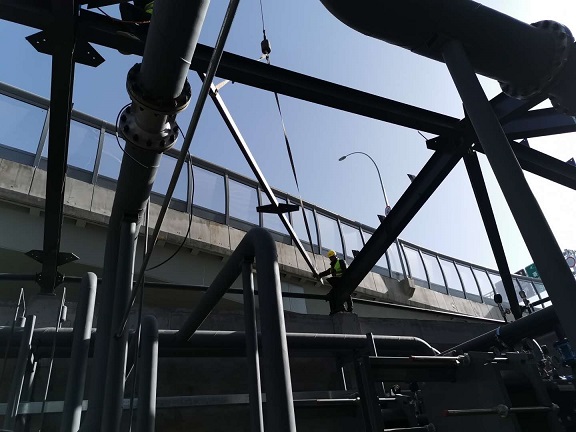 在檢查內(nèi)蒙古高路公司新建熱力站安裝屋頂鋼結(jié)構(gòu)及屋面彩鋼板項(xiàng)目時(shí)發(fā)現(xiàn)施工人員在高空作業(yè)雖然佩戴了安全帶、安全帽,但未按要求懸掛安全表示;檢查人員要求施工負(fù)責(zé)人立即按照安全帶使用規(guī)范進(jìn)行整改,并責(zé)令安全質(zhì)檢處跟進(jìn)整改的情況。