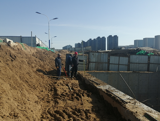 現(xiàn)場督促施工單位在施工區(qū)域外圍加設硬質(zhì)圍擋、夜間設置安全警示燈、基坑周邊加設防護欄等工作。針對可能遇到的安全隱患予以現(xiàn)場指出,并要求施工單位編制應急預案,現(xiàn)場配備專職安全員、增設抽水機及相關安全設施,以確保項目安全平穩(wěn)施工。
