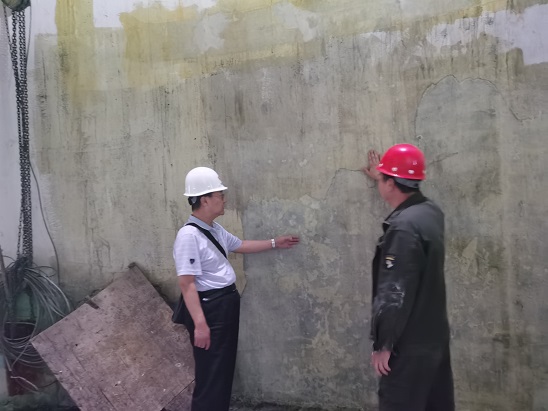 檢查小組通過采用外力敲擊及肉眼觀察的方式對B車間煙囪內(nèi)壁防腐層施工質(zhì)量進行詳細(xì)檢查。