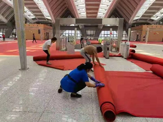 由于東客站長時間閑置導致站內(nèi)外車道、廣場雜草叢生,站內(nèi)通道、大廳地面及辦公區(qū)域灰塵堆積。由于啟用時間緊、作業(yè)面積較大,城發(fā)物業(yè)公司立即組織人員、機械設備、物料用品,次日一早,工作人員入場保潔,從門前車道、廣場除草、噴藥到建筑外立面玻璃擦拭;從站內(nèi)地面、辦公區(qū)域清潔到客車入站處場地及道路沖洗,隨處都能看到工作人員的身影。原本需要一周的工作,在工作人員的不懈努力下,僅用三天就完成了集團公司安排的保潔工作任務。使保潔面積2.3萬平米的現(xiàn)場面貌煥然一新,具備了投入使用的條件,也體現(xiàn)了物業(yè)公司能打硬仗、敢于攻堅的企業(yè)精神。