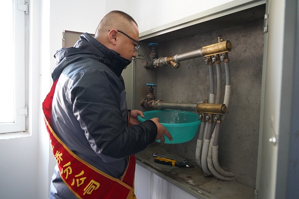 正說著,一位大娘來到我們宣傳現(xiàn)場,向客服人員反映家中暖氣不熱,客服人員詳細登記了老人樓棟門牌號后,隨機安排工作人員前往老人家中查看情況??头藛T先是入戶為老人進行了測溫,在老人反映最冷的陰面房間,客服人員利用專業(yè)的測溫儀,測得當時室溫23.6℃。由于當時是陽光充足的晌午,考慮到目前室溫受光照的影響,工作人員又仔細認真地查看了大娘家的地暖分集水器。通過對分集水器的檢查,工作人員發(fā)現(xiàn)大娘家地暖盤管有明顯的堵塞情況,需要進行沖洗。工作人員將這一情況詳細向大娘進行解釋,并為其沖洗了濾網(wǎng)。對于工作人員熱情、認真的服務,大娘一個勁地說好。