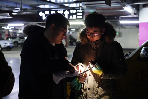 11月12日上午,在巨海城八區(qū)6號居民樓副一層,城發(fā)橋靠分公司第六運營所的員工們正在進(jìn)行低區(qū)二次網(wǎng)主管道的流量測量工作。