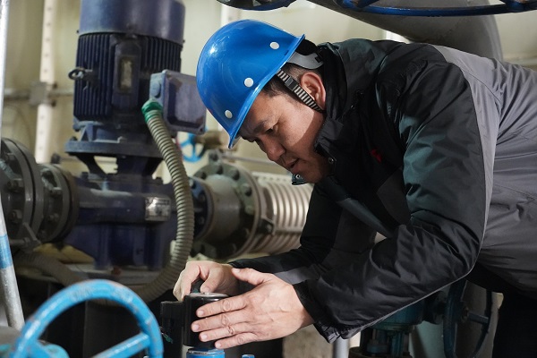 在廠區(qū)的中繼泵站,水化設備轟轟隆隆運轉著,伴隨著震耳欲聾的聲音,宿日升在對設備例行巡檢后,他開始對過濾器進行反洗,排除一次網(wǎng)水的雜質和泥沙;接著對站內的循環(huán)泵進行測溫,耳朵靠近設備,聽聽聲音是否有異常;查看電腦的供回水壓力......這些工作看似簡單,但是卻非常重要,任何一個環(huán)節(jié)的疏忽都可能會使廠區(qū)到盛樂電廠長輸管線的水質出現(xiàn)問題。