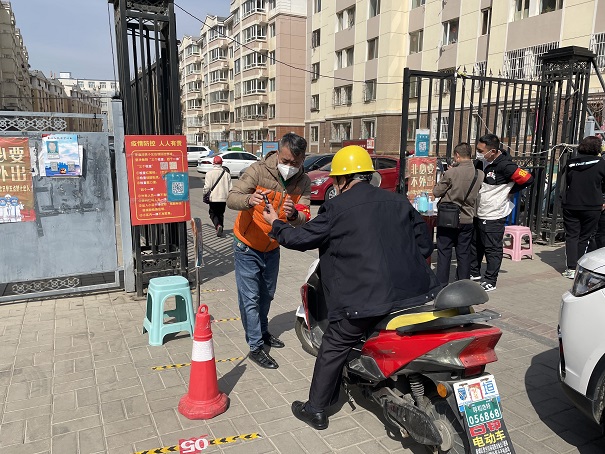 "我們也不知道能幫些啥忙,就是看見你們每天挺辛苦的,這是剛買的水果,你們吃點兒吧!"4月9日傍晚時分,正在新城家園廉租房小區(qū)值守的公司員工董勇、陳宏琦收到了來自小區(qū)居民的一份心意。"這幾天的工作雖然很累,但和居民相處相伴的過程中收獲很多,比如說,互相理解、互相包容、互相支持、互相配合、互相感動等,因此,我們覺得苦中有樂。"