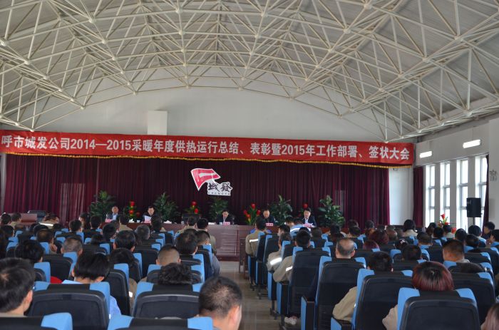 2015年5月12日,城發(fā)召開;2014~2015采暖年度供熱運行總結(jié)、表彰暨2015年工作部署、簽狀大會,公司領導班子成員、部室及分子公司負責人等200多名公司職工參會。
