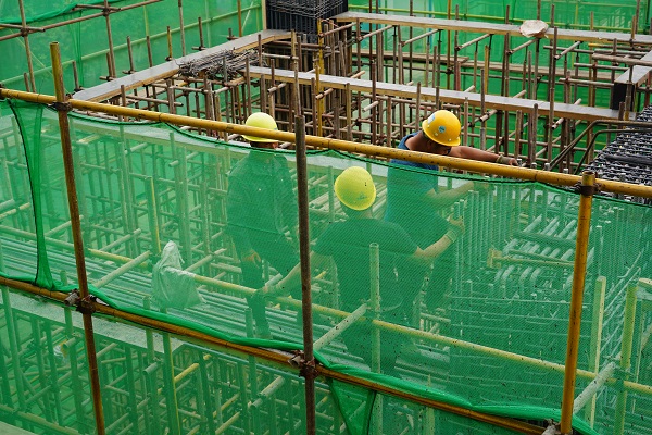 負(fù)責(zé)該工程的工作人員賈玉龍介紹,工程今年3月20復(fù)工,現(xiàn)輸煤棧橋、渣廊渣庫主體部分已封頂,現(xiàn)風(fēng)機(jī)間框架結(jié)構(gòu)部分正熱火朝天的施工,工人們加班加點(diǎn)的推進(jìn)施工進(jìn)度,預(yù)計(jì)5月15日主體封頂。