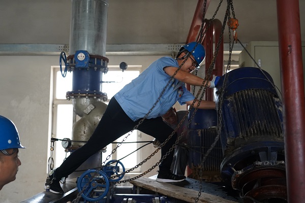 近日,筆者跟隨城發(fā)供熱公司橋靠分公司運(yùn)營(yíng)六所所長(zhǎng),來到了巨海城二區(qū)的加壓站,那里正在對(duì)站內(nèi)的設(shè)備進(jìn)行檢修。筆者一進(jìn)加壓站,就看到五個(gè)身強(qiáng)體壯的男同志正在合力拆卸一個(gè)1米多高的循環(huán)泵,他們有的拉著鋼絲繩,有的往下面墊木板,每個(gè)人的手臂上是青筋暴起,臉憋的通紅。別看這么不起眼的一個(gè)循環(huán)泵,5個(gè)人用了半小時(shí)才拆卸下來。