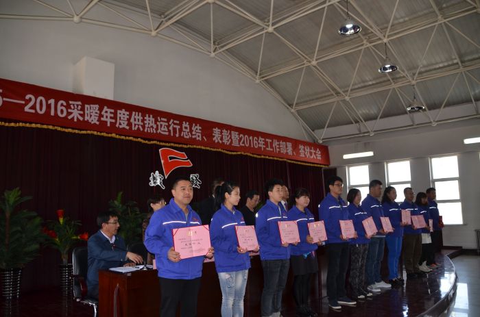 會議由常務(wù)副總經(jīng)理史繼文主持,會上,吳利勤副總經(jīng)理作了20152016采暖年度供熱運行總結(jié)報告;黨委副書記張永宣讀了表彰決定,表彰了2015年度先進集體、先進工作者和城發(fā)最美員工;呂德育總經(jīng)理部署了公司2016年工作,并與相關(guān)部門責任人簽訂了2016年工作目標責任狀。
