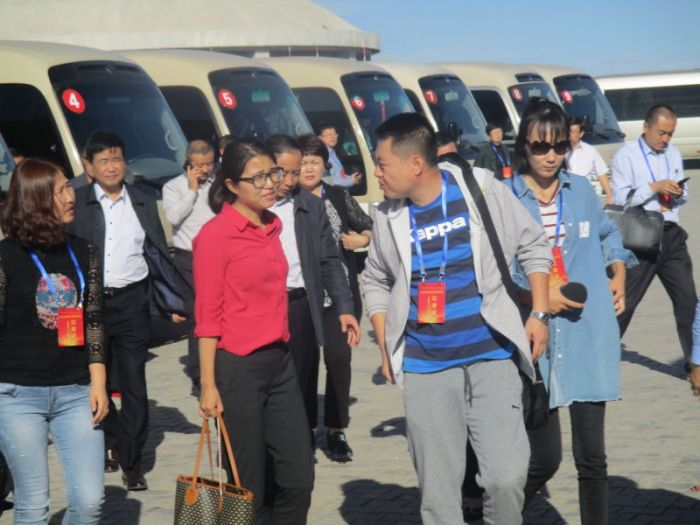 與會代表一行在建設(shè)中的內(nèi)蒙古少數(shù)民族群眾文化體育運(yùn)動中心感受這一具有國際領(lǐng)先水準(zhǔn)的大型群眾性文化體育休閑場館所承載的創(chuàng)新發(fā)展、協(xié)同發(fā)展、綠色發(fā)展、開放發(fā)展和共享發(fā)展的理念。