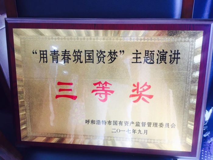 9月8日,由呼市國資委主辦的用青春筑國資夢主題演講比賽落下帷幕。公司工會組織兩名員工參加了本次活動,劉司亮、常榮榮兩名同志喜獲個人三等獎,團體三等獎的好成績。