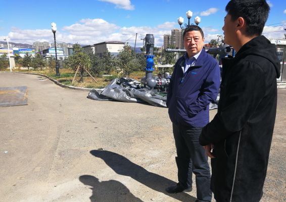在財(cái)政廳東站景泰小區(qū)供熱管網(wǎng)項(xiàng)目收尾施工現(xiàn)場(chǎng),副經(jīng)理任強(qiáng)向負(fù)責(zé)該項(xiàng)目的施工負(fù)責(zé)人詢(xún)問(wèn)了施工的具體情況,對(duì)項(xiàng)目工作進(jìn)展情況給予充分肯定。