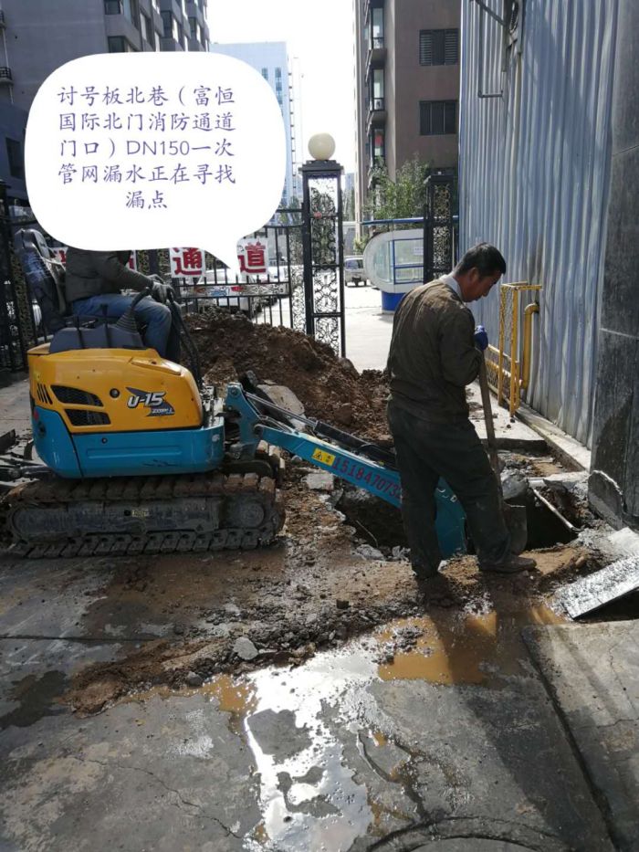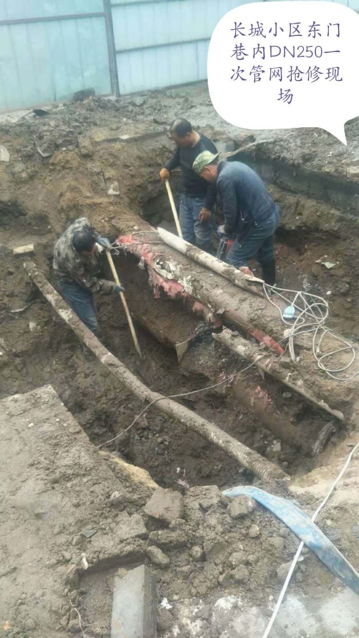 9月29日,管網(wǎng)公司接到辛家營(yíng)供熱分公司搶修通知,騰飛南路如意廣場(chǎng)環(huán)形路口北側(cè)東綠化帶中發(fā)現(xiàn)一處冒水現(xiàn)象。管網(wǎng)公司領(lǐng)導(dǎo)高度重視,迅即安排人手,查找漏水點(diǎn)。他們憑借豐富的搶修經(jīng)驗(yàn),決定采用十字釘,直架設(shè)于涵管之上,創(chuàng)造人工作業(yè)通道,根據(jù)涵管內(nèi)水流方向判斷,搶修人員在胸腹部綁上滑板及護(hù)具,在DN600熱力管道中向西滑行50米左右,終于發(fā)現(xiàn)了漏水點(diǎn)。為了給供暖投運(yùn)工作贏取時(shí)間,參與搶修的20余人輪班作業(yè),連續(xù)奮戰(zhàn)7個(gè)晝夜,10月6日,圓滿(mǎn)完成搶修任務(wù)。