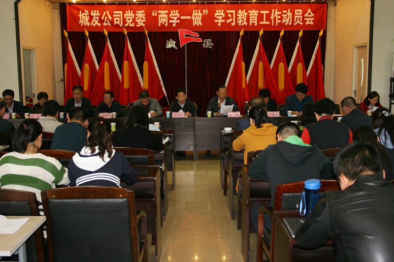 按照市委的統(tǒng)一部署和要求,城發(fā)公司黨委于5月5日下午召開(kāi)了“兩學(xué)一做”學(xué)習(xí)教育動(dòng)員會(huì)。公司領(lǐng)導(dǎo)班子全體成員,全體黨支部書(shū)記、支委部委員、黨小組長(zhǎng)、黨群處長(zhǎng)及所有黨務(wù)工作人員參加了會(huì)議。黨委副書(shū)記張永同志主持會(huì)議并宣讀了《城發(fā)公司黨委關(guān)于在全體黨員中開(kāi)展“兩學(xué)一做”學(xué)習(xí)教育的工作方案》(以下簡(jiǎn)稱(chēng)“活動(dòng)方案”)。