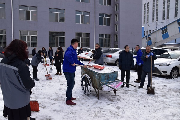 16日,辛家營分公司黨支部組織黨員、環(huán)節(jié)干部、團員青年及普通職工共計30多人開展了清除廠區(qū)內(nèi)積雪的活動。