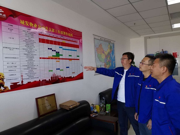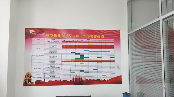 6月1日,城發(fā)物業(yè)公司黨支部辦公室、黨群工作處的兩張黨建工作部署作戰(zhàn)圖展板,吸引了全體干部職工的注意力。這兩張展板不僅詳細(xì)地安排部署了今年黨建的各項重點工作和日常工作,同時按照時間節(jié)點,細(xì)化操作舉措,掛圖作戰(zhàn),序時推進(jìn),精準(zhǔn)發(fā)力,穩(wěn)扎穩(wěn)打,逐步推進(jìn)基層黨組織建設(shè)工作水平。