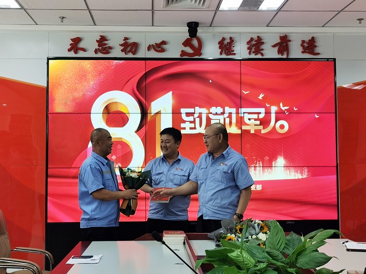 黨支部書記楊福平主持活動,楊福平代表物流公司黨支部向全公司復(fù)原退伍軍人致以誠摯問候和崇高敬意,他指出,物流公司要大力宣傳人民解放軍的光輝歷史、豐功偉績和廣大官兵在搶險救災(zāi)斗爭中的先進(jìn)典型、模范事跡,大力開展國防教育,努力在全公司形成關(guān)心國防、熱愛國防、建設(shè)國防和保衛(wèi)國防的濃厚氛圍。隨后,楊福平同志、丁雪峰同志代表黨支部給退伍軍人分別送上鮮花以及紅色書籍。