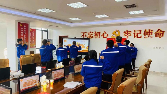 “我宣誓:忠于中華人民共和國憲法,維護(hù)憲法權(quán)威,履行法定職責(zé)……”隨著國歌嘹亮奏響后,黨委委員、總經(jīng)理呂德育親自領(lǐng)誓,黨委副書記張永監(jiān)誓,其他宣誓人在領(lǐng)誓人身后列隊站立,全體面向國旗,左手緊捧憲法,右手舉拳,跟誦誓詞,向憲法莊嚴(yán)宣誓。隨后,班子成員進(jìn)行了憲法學(xué)習(xí)活動,集體觀看了《憲法知識視頻講堂》,從憲法的“內(nèi)容、原則、意義、作用”到“修正后的規(guī)定”等方面進(jìn)行了學(xué)習(xí)。