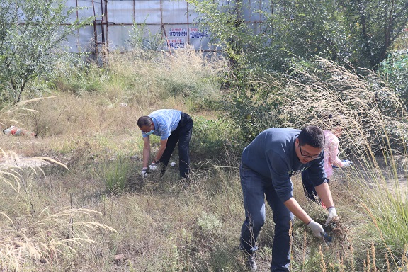 活動(dòng)中,大家在張永同志的帶領(lǐng)下進(jìn)行地毯式清除,大家戴手套、口罩、全副武裝,采取連根拔出和收割的方式徹底消除蒿粉傳播漂浮,切斷蒿粉過(guò)敏原并將拔出的蒿草及時(shí)清運(yùn),以免草籽散落再次生長(zhǎng)。
