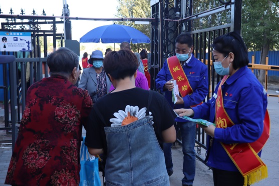 活動現(xiàn)場,支部書記娜仁同志帶頭為居民發(fā)放《呼和浩特市市民文明手冊》《爭創(chuàng)文明城 邀您共參與——致市民朋友的一封信》等宣傳資料,宣講創(chuàng)城工作的重要意義,科普創(chuàng)建文明城市的相關(guān)知識,號召大家從自身做起,從身邊小事做起,爭做文明行為的踐行者,文明風(fēng)尚的傳播者,文明城市的參與者、代言人。