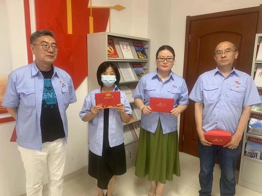 胡日查同志宣讀了集團(tuán)公司黨委審批通過齊樂、張學(xué)敏兩位同志成為中國(guó)共產(chǎn)黨預(yù)備黨員,莊永飛、劉濤兩位同志按期轉(zhuǎn)為中國(guó)共產(chǎn)黨正式黨員相關(guān)事宜,并向齊樂、張學(xué)敏兩同志表示了衷心祝賀,要求她們?cè)诮窈蟮膶W(xué)習(xí)和工作中不斷用實(shí)際行動(dòng)踐行初心使命,以黨員的標(biāo)準(zhǔn)嚴(yán)格要求自己,時(shí)刻保持共產(chǎn)黨員的良好形象、先進(jìn)本色。隨后,胡日查同志帶領(lǐng)齊樂、張學(xué)敏兩位同志和其他全體黨員同志高舉右手,莊嚴(yán)宣誓,再一次重溫入黨誓詞,重憶入黨初心。齊樂、張學(xué)敏兩位同志表示,作為新時(shí)代的青年,將牢記黨的宗旨,牢記入黨初心和使命,腳踏實(shí)地做好本職工作,以飽滿的熱情和昂揚(yáng)的斗志投入到工作中去。